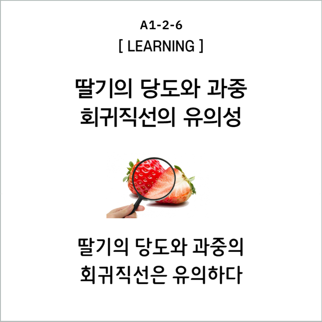 딸기의 당도와 과중 회귀직선의 유의성